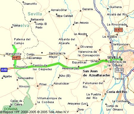 Una vez que estamos en la SE-30, cogemos la autopista A-49 en dirección a Huelva. La dejamos en la salida de Chucena. Cruzamos este pueblo, al llegar a la carretera nacional A-472 giramos a la izquierda y a unos 500 metros giramos a la derecha. Atravesamos Escacena el Campo y a unos 800 metros está Paterna del Campo.