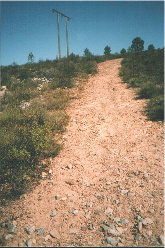 Tras salir de Cañaveral y dejar a la izquierda la ermita de San Cristobal, iniciamos la subida del puerto de los Castaños, cuyo tramo más duro es el de la fotografía, la famosa subida del cortafuegos. ¡Durísima! Andando y empujando la bici, y así y todo, solo podía dar dos o tres pasos seguidos.