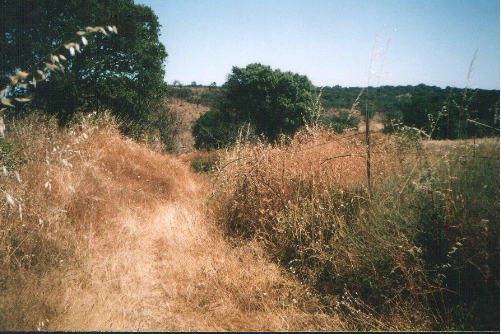 Continuando por este terreno se atraviesa la portela de la alambrada que se observa en la foto y se vadea un arroyo, tras el cual, sale a la derecha una senda (yo no la vi) que nos desvía hasta Grimaldo (si queremos, ya que el camino sigue de frente). Poco después nos encontraremos en la zona denominada "cuatro términos ", denominada por todos como zona conflictiva por la orientación. Yo, después de haberme perdido en la zona anterior, me desvié y busqué la carretera para atravesarla.