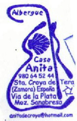 Sello del acogedor albergue Casa Anita de Santa Croya de Tera, cuyos dueños me atendieros de maravilla. El marido de Anita me invitó a conocer su bodega, donde me dio a probar su buen vino. Si haces el Camino, no dejes de hacer noche allí.