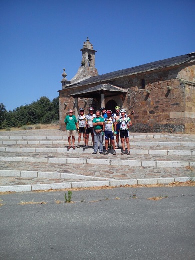 Salida a las 6h 55m y llegada a las 13h 30m. Tiempo de pedaleo 5h 30m. Temperatura al llegar 37,5 grados. Salimos de Santa Croya de Tera siempre por la rivera del rio Tera, pasamos por Santa Marta de Tera (casi todos los pueblos donde pasa este río su nombre terminan en Tera) continuamos por un rosario de pequeñas poblaciones cruzando en varias ocasiones el río Tera. Entre álamos y bosques de rivera pasamos las siguientes poblaciones: Calzadilla de Tera, Olleros de Tera, Gran embalse, Villar de Farfón, Rionegro del Puente y Mombuey donde nos esperaba nuestro coche de avituallamiento con Chaparro y José Leal. Continuamos la ruta con dirección Valdemerilla, pasando por Cernedilla, San Salvador de de Palezuelo, Entrepeñas (con vista a su embalse), Asturianos, Palacios de Sanabria donde aquí nos esperaba nuevamente nuestro coche. Pasamos por las poblaciones de Remesal, Otero de Sanabria, Triufé ( aquí se conservan las ruinas de un antiguo hospital de peregrinos).y por último finalizamos nuestra etapa en Puebla de Sanabria. La ruta de hoy en opinión de todos ha resultado las más bonita por su trazado, senderos, arboledas, facilidad de transitar con la bicicleta, etc. Destacar las cercas con sus robles, encinas, castaños, etc. Incidencias: