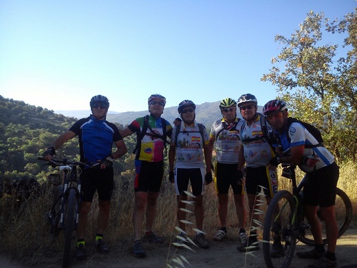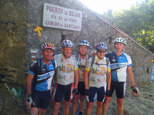 Salida a las 6h 40 m- llegada 12 h 20m. 50km y 3 h 30m de pedaleo, 39 grados. Ya empezamos a soportar las temperaturas. Salida de Aldea Nueva por carretera hasta finalizar la subida de Montemayor. Dejamos a la derecha el cruce de Hervás y el puerto de Honduras. En la entrada de Baños de Montemayor, se encuentra el monolito de la ruta de la plata y ruta mozárabe del camino de Santiago. Se adjunta foto. P:D. En unas fotos sale Márquez y en otras yo. Nos turnamos para salir en la misma. Subida tempranera al puerto de Bejar, con dos tercios de carreta del puerto hasta volver a conectar con el camino de Santiago, calzada romana que nos lleva en una bajada muy fuerte, larga y bonita que nos lleva a una de las márgenes del rio cuerpo de hombre, acampanándonos hasta llegar a Calzada de Bejar. Un tramo de piedras de 200m intransitable. Continuamos una subida subida hasta Valverde de Valdecasas y Valdecasas. Dicha subida con bastante pendiente. Continuamos la ruta hacia Fuenteroble de Salvatierra donde pernoctaremos esta noche. En este último tramo se produce un surrumierito ( bien llamado pérdida). El compañero Diego que sin telefono.mal interpretó la señal y cogió un camino erróneo, desviándose 1 km de la ruta. Una vez que nos dimos cuenta que el sol había cambiado de posición, y volvimos por nuestros pasos al camino original. Un señor que nos encontramos en este tramo, con cierto humor castellano, nos dijo que pa atrás, que si continuamos por ese cordel (Cádiz-Aliste) llegaríamos a Cádiz. Incidencias. Tercer pinchazo en rueda delantera de José María. El compañero Chaparro que circulaba por la N- 630 con el coche de apoyo, que al llegar a Guijuelo se encontró una rotonda que tenía tres salidas, sin indicaciones que después de darle tres vueltas al ruedo, se dirigió a una fábrica de mármol cercana para pedir información a un operario. Una vez parado en el lugar, se aproximó una pareja de guardias civiles de tráfico donde Chaparro le dice: “Si él fuera el Presidente del Estado, ponía una pareja día y noche en la rotonda. Unos de los guardias hizo un comentario y él respondió: Yo traigo ahí un comandante en la bicicleta que lo voy a llamar con el móvil, que además tiene un hijo que es sargento en el pueblo y otro más gordo todavía, y verás como se arregla esto”. La sonrisa de la benemérita, no falto. |