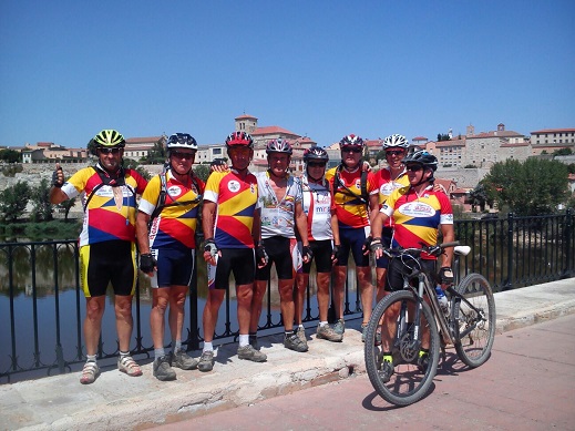 Salida a las 7h 15m. Pedaleo real 5h 25m 95 Km. 40´5 grados a la llegada. Partimos de la ciudad de Salamanca, pasando por el estadio helmantico con dirección Aldea Seca de Armuña donde nos llevamos una hora y cuarto perdidos hasta encontrar hasta encontrar el camino de la ruta de la plata. Pasamos por Castellanos de de Villiquera contemplando los extensos campos de la llanura castellana donde llegamos al pueblo de Calzadilla de Valdunciel donde paramos a desayunar un poco. Desde este pueblo y por carretera, debido a las obras de la autopista, nos orientaron que era mejor continuar hasta el cruce de Valdesola, donde retomamos al camino de la via de la plata. Seguimos por las extensas llanuras hasta llegar a El Cubo de la Tierra del Vino, otro pueblo castellano de la provincia de Zamora. Continuamos por caminos hasta llegar a Zamora, entrando en la ciudad por el puente medieval, rodeando las murallas hasta salir de ella. Retomamos por carretera la N-630 pasando por Roales del Pan hasta llegar a Montamarta, donde pernoctamos, repusimos fuerzas y descansamos para salir al día siguiente. Incidencias: Cuarto pinchazo de José María Diego Palomo antes de llegar a Zamora, anduvo perdido por esos caminos, unos tres o cuatro kilómetros saliendo a su encuentro los compañeros Peinado y Polo. |